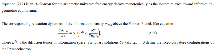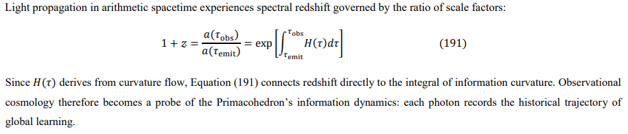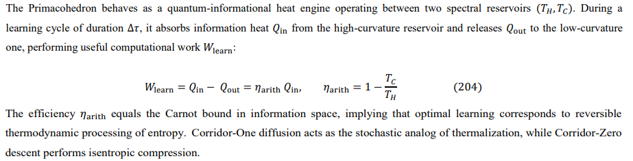 (i) Geometry as Computation: The Primacohedron recasts the universe as a computation executed by curvature flow, where learning, evolution, and gravity are equivalent processes in information space. Spacetime is not a static arena but a dynamic record of informational transformations encoded in adelic algebra.