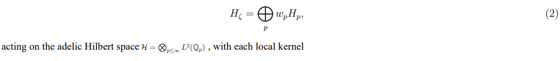 (1) Rigorous operator construction. Define the adelic operator Hζ on a wellspecified Hilbert space. This requires establishing the domain, symmetry, closability, and self-adjointness of the p-adic kernels and their adelic sum.