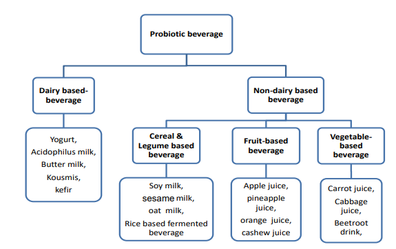 Figure 1: Categorization of Probiotic Beverages into Dairy Based Beverage and Non- Dairy Based Beverage with Examples