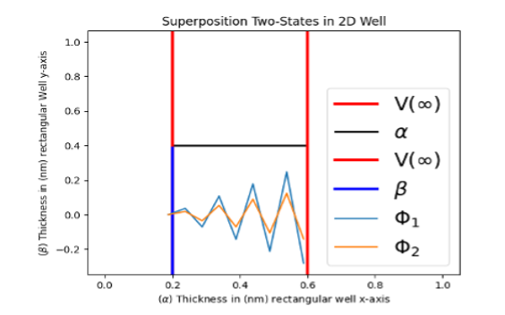 In our next study, we will consider a quantum mechanical scenario in which a single particle is confined in superposition within a two-dimensional potential well with finite boundaries or tunneling effects through a potential barrier. Unlike an infinite potential well, the barriers have a potential energy, allowing a small probability of the particle being found outside the well boundaries [18-21].