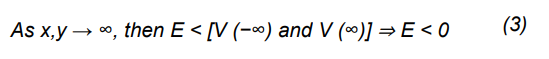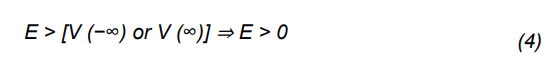 The quantum energy E(x,y,t) exceeds the energy potential V(x,y,t) on either side of the scattering state.