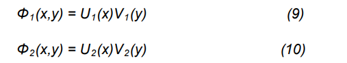 We apply the boundary conditions from the equations (20) to (23), for example U1(x) = A1sin(k1x) + A2cos(k1x) where x (0) = 0 and x(α) = 0 imply A2 = 0 and