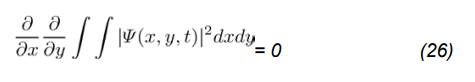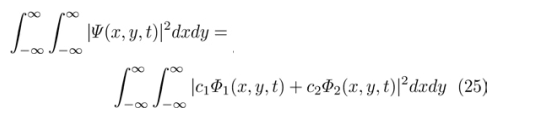 The probability density function of the particle’s location is the spatial integral of |Ψ(x,y,t)|2 in the rectangular box that gives the probability of finding the particle in the box at time t. Since the particle must be somewhere, the wave function for a bounded particle is usually normalized, so that: