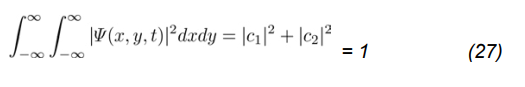 Using a time dependent Schrödinger equation of a Hamiltonian operation wave function (6), we substitute the wave Ψ(x,y,t) by its linear combination of partial wave functions (11) given [10,11,12]: