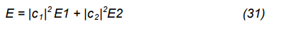 Here c1 and c2 are complex coefficients that represent the probability amplitude of each state.
