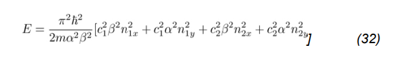 The table 1 shows the different levels of quantum energy. Level one is the lowest energy called the ground state (E=0.017657 eV). As node n moves up, the energies increase in the rectangular well, which are called excited states. Thus, the energy levels of the particle depend on the dimensions of the rectangular well and the quantum number n associated with each state.