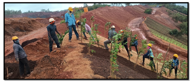 The objective of this article is to study the on field results and suggest/recommend suitable engineering and biological measures for waste dump rehabilitation and reclamation of the lost ecosystem, and sustainable management of over burden dumps, surface water management, greening of mines for rejuvenation of lost biodiversity and overall land use of the mined-out area for improvement of environment and forest ecosystem, within the parameters framed by the Hon’ble Supreme Court with experts input. The rehabilitation and reclamation of waste dumps and allied structures are discussed herein, are broadly raising of (1) Engineering structures and (2) Biological measures. The lessees submit weekly their progress of implementation of RR Plan. The latest progress report of M/s SKME Pvt Ltd is stated in Table-1