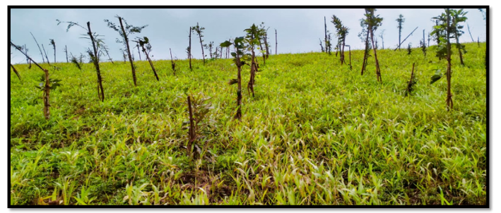 All along the slope of the dumps, garland drains with bottom width of 0.5 m, top width two meter with side slope 1:2 and one-meter height should be constructed and connected to natural drain/nala. Cost effective hydroseeding is suggested for implementation with bioengineering measures especially in afforestation activities. The species suggested for seed broadcasting/hydroseeding are shown in Table -3. These species are capable of getting established in due course of time in disturbed areas. In addition to hydroseeding, planting of suitable herbs, shrubs, creepers and trees have to be done on the slopes by making holes in geo-textile coir mat. For gentle slopes of dumps, benches and trenches has to be made, followed by seed broadcasting of herbs and planting of seedlings of shrubs and tree species as suggested in Table -4 will help in reclamation of vegetation. Regular watering with local devices is must