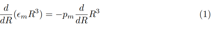 ∈m and pm denotes the thermal energy density and the thermal pressure of gaseous cosmic matter.