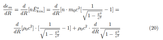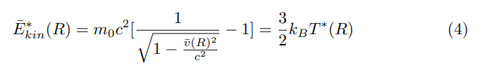 The mean kinetic or thermal energy Ekin∗ of the relativistic cosmic baryons with particle density n = n(R), or so to say: their relativistic temperature T ∗ (R), thereby is given in view of the particle-velocity decreases by the following expression (see e.g. French, 1968):