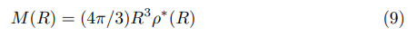where the mass density ρ* (R) at scale R, including the relativistic case with ρ* (R) ≥ ρ0 (R), is given by: