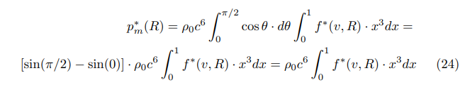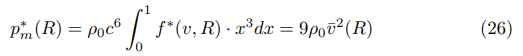 To procede we now have to find an expression for the relativistic baryon pressure p*m. Starting from the fact that the cosmic distribution function f * (v, R) is isotropic, we then find with x = v / c: