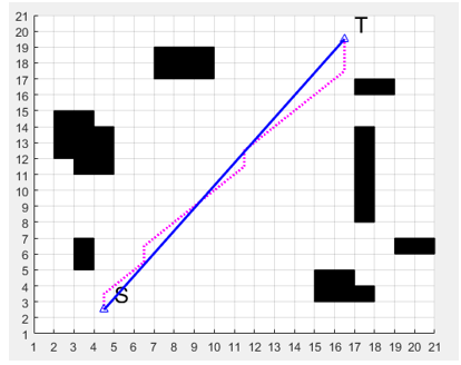 • The traditional ant colony algorithm adopts eight-direction search, which will limit the Angle of selecting the next path node in the search process of artificial ants to some extent, and finally make the path length obtained by the algorithm exceed the ideal optimal path, and the path Angle is too large, which is not conducive to the actual tracking and movement of unmanned boats, and has higher requirements for the robot motor and other actuator. If the robot completely follows this path, it may cause the failure of the motor and other power equipment; At the same time, in the actual navigation environment, the robot can move at any Angle, that is, the path is a path with any heading Angle.