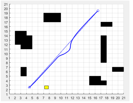 In order to verify the effectiveness of the proposed path planning algorithm, an experiment is carried out. The initial target path planning test of the robot was carried out in the environment without additional obstacles, and the test results are shown in Figure 8.