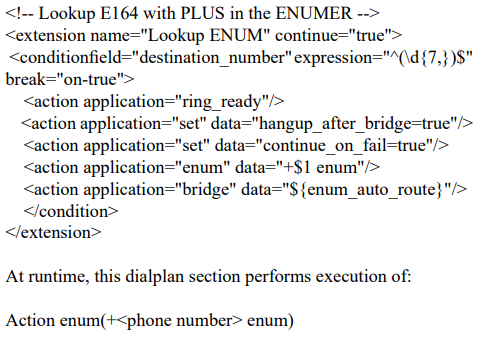 To conduct the test call, we integrated the ENUMER subsystem into the DNS server following the emerDNS integration guide [6]. Subsequently, FreeSWITCH executed the number resolution query using the standard dialplan commands as outlined below: