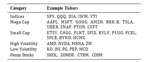 Table III also notes that GANs may overfit small datasets. In our experiments, we did not implement explicit overfitting mitigation techniques. We observed that overfitting primarily occurred when modeling penny stock data, which generally had lower liquidity and noisier patterns. For the broader dataset (including indices, mega-cap, and mid-cap stocks), we did not see significant overfitting issues. Our current implementation utilizes a standard GAN architecture with ReLU activations and Adam optimizers, which yields stable training performance overall. Future work could explore regularization strategies specifically targeting low- volume penny stock regimes.