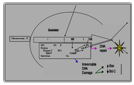 Schedule 1: P-53 protein in interaction by enhancing of the apoptotic signals for DNA repair.[10].(Udristioiu A, Florescu C, Popescu MA, Cojocaru M. High Concentration of anaerobic ATP implicated in aborted apoptosis from CLL. LabMed. 2010; 41: 203-208).