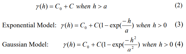 Semivariogram modeling is used in the prediction of unknown measure value at a known location. Such a method is called kriging (Cressie 1993). By using information such as the nugget, sill, and range, the variogram function can be used to estimate (interpolate) the value at a known location. Generally semivariogram models are of two categories, namely those with sills and those without any sill.