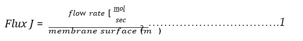 Where J is the gas flux over the membrane and mol. s-1m-2 is the ratio of the gas flow rate to the membrane surface area, which was determined to be 111.3.