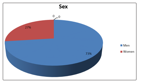 The average age of our patients was 40 years with age extremes ranging from 11 years to 70 years with 11 men (73%) and 4 women (27%). The sex ratio (men / women) is 2.75.