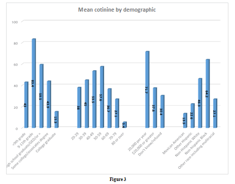 Controlling for race/ethnicity, income, education, and age, there was an increase in serum cotinine levels commiserate with self- reported smoke exposure. This relationship has previously been documented in the literature among both genders [42-44]. This analysis provides some level of cross validation, within these NHANES cohorts, that women self-reporting smoke exposure have serum cotinine levels that correspond with such reporting. Using the smoke-exposure discovery method of “number of household smokers” provided the most detailed picture of cotinine levels based on self-reported exposure. This may be the ideal measure when considering household smoke exposure using self-report. These data are unique and fill a demonstrated gap in analysis of smoke exposure, specifically in women.
