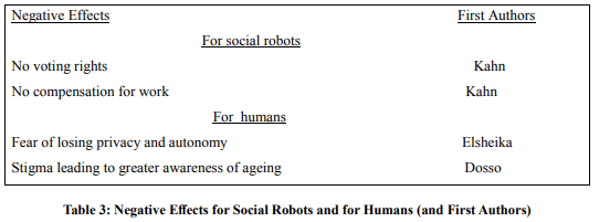 In a study already summarized, the children believed that “Robovie” the social robot was intelligent, but they also suggested that a social robot had no voting rights and could not be compensated for work [5]. In another study also already reviewed, young adults expressed concern regarding the cost and lack of availability of social robots for those who could not afford them [12].