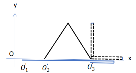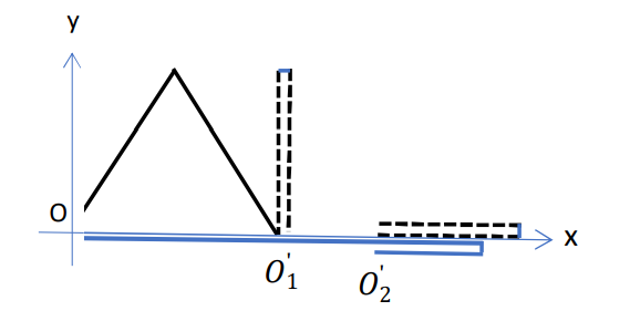 Figure 2: The wave emitted from the source O'1 , moving parallel to the direction of motion, enters the source O' 3after 2kx′/c, and the wave emitted from the source O'2 , moving perpendicular to the direction of motion, enters the same point O' after 2x′/c
