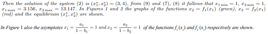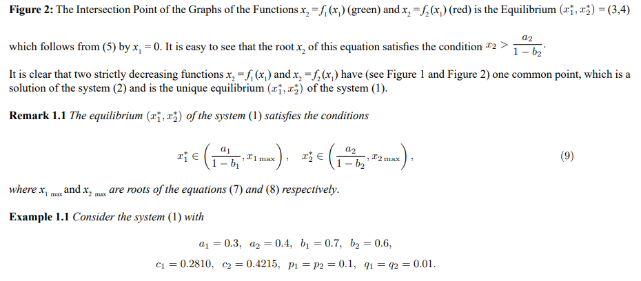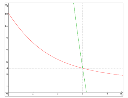 Figure 1: The Graphs of the Functions x2 = f1 (x1) (green) and x2 = f2 (x1) (red)