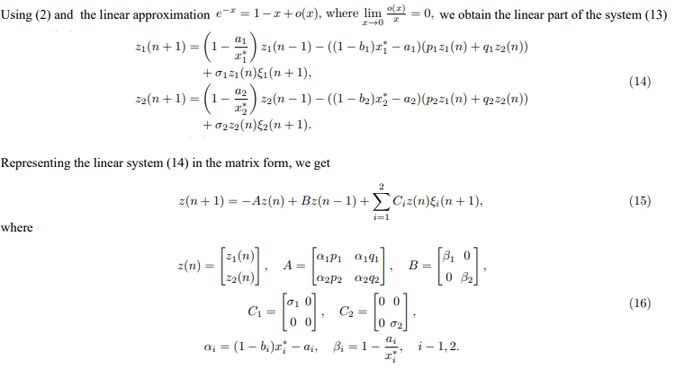Citation: Shaikhet, L. (2025). Stability Analysis of a System of Stochastic Difference Equations with Exponential Nonlinearity. Curr Res Stat Math 4(3), 01-09.