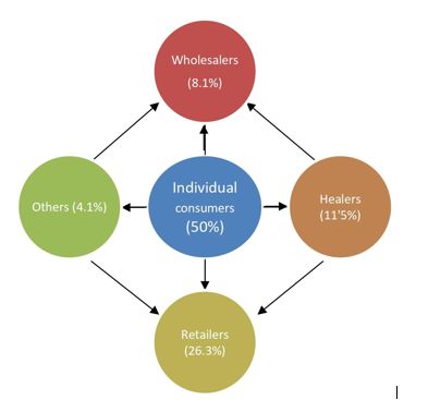 In the second stage, four markets were purposively selected from the urban cluster based on the concentration of medicinal plant marketers. Also in the urban cluster, there are itinerant medicinal plant marketers who move around the town in cars, motorcycles, and wheelbarrows selling medicinal herbs. Meanwhile, for the peri-urban cluster, one major market was purposively selected from each of the three peri-urban markets (Table 1).
