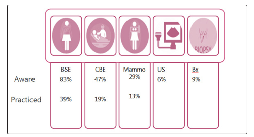Several studies have been conducted in the Middle East in order to assess the knowledge, attitude and practices of female patients on the screening and early detection methods of breast cancer. Results in Saudi Arabia and UAE both exhibited lack of knowledge of breast cancer and screening and early detection as well as lack/ decrease in practices [4,5]. Looking more closely, the results have correspondingly shown that even though the participants were well aware that breast cancer is most common cancer (85%) in Jordan there was still evidence of misconceptions and lack of practice of the awareness methods.