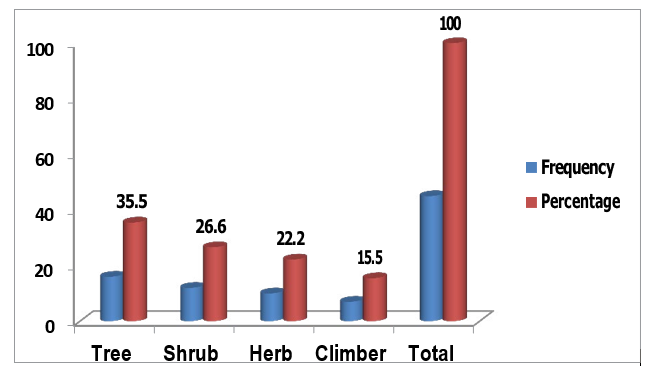 This practice was actually observed by the researchers in the study areas. For example, Cordia africana, Justicia schimperiana ,Cucu-ribitia peop and were widely grow in farmlands, farm boundaries and watershed areas and others frequently appear around home¬steads as live fence (Moringa stenopetala, Oxytenathera abyssi¬nica, Diosocorea alanata, Justicia schimperiana and Moras alba), shade (Phoenix reclinata, Ficus Vasta, and Moringa stenopetala) and along road sides and degraded areas. Similar trend has been reported in the indigenous communities in and the buffer area of Awash National Park [40].