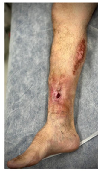 Figure 4: Surgical management of Type 3 fistulas in the lower limb, characterized by severe tissue loss and vascular compromise