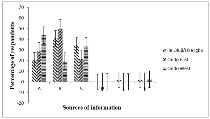 Figure 2: Distribution of The Respondent by Sources of Information in Ile Oluji/Oke Igbo, Ondo East and Ondo West LGAs Source: Field Survey, 2019