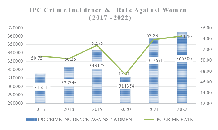 This study presents a comprehensive analysis of major IPC crimes against women in India over the period 2017–2023, drawing on nationally representative NCRB data to examine trends, growth patterns, and geographical variation. The findings demonstrate that violence against women continues to constitute a substantial share of all recorded crimes in the country and that the absolute number of women affected has increased over time. The persistence of these levels, despite extensive legal provisions under the Indian Penal Code, 1860 and the Bharatiya Nyaya Sanhita, 2023, as well as periodic legal reforms, indicates that violence against women remains deeply embedded within India’s social and institutional structures.