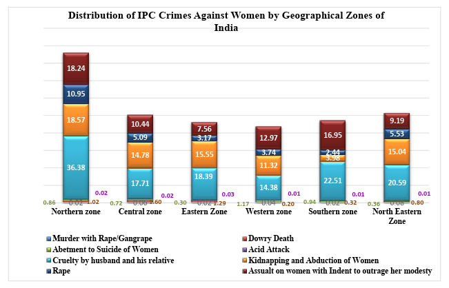 The present study responds to this gap by examining NCRB data from 2017–2023 for eight major IPC crimes against women and analysing their trends and distribution across six geographical zones of India.