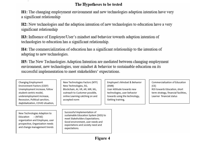 So, we accept the hypotheses and the results will prove that the new technologies adaption intention can adequately meet the requirements of the Education System and the successful implementation is very likely given the Employee‘s mindset and perceptions, new technologies features, the commercial angle to education and the changing environment both external and internal to the organization. |