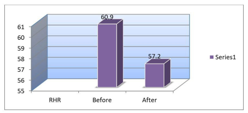 Figure 1 show that sample football players have RHR before supplementations 60.9 beat/minute and after supplementation 57.2 beat/minute.