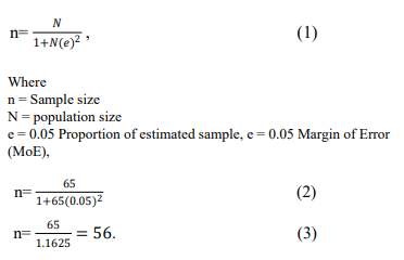 The survey targeted local farmers, agricultural experts, students, environmental activists, and residents significantly impacted by climate change, with a research population of 65 people. To ensure representation across demographics such as gender, age, marital status, and occupation, the study group was chosen through a ran- dom selection process from the population. Three different factors were taken into consideration to determine the sample size. Firstly, the intended confidence level (95%), followed by the sample's estimated proportion, and lastly, the margin of error. 56 participants in total were surveyed using Yamane's sample size formula [46].