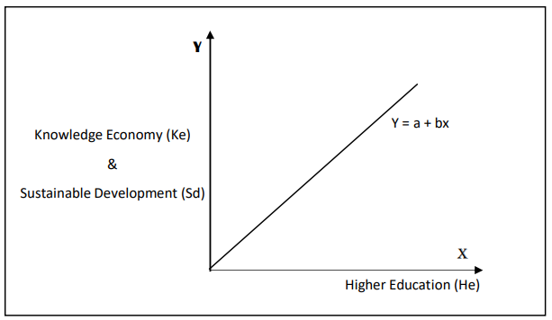 Based on the preceding argument, it may be posited that the efficacy of higher education plays a crucial role in achieving a knowledge-based economy and promoting sustainable development, as indicated by the functional notation employed.