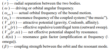 • resonance-mediated orbital stability in astrophysical systems. These investigations may clarify whether resonance-gravity can be expressed as an effective field theory or as an emergent limit of deeper informational dynamics.