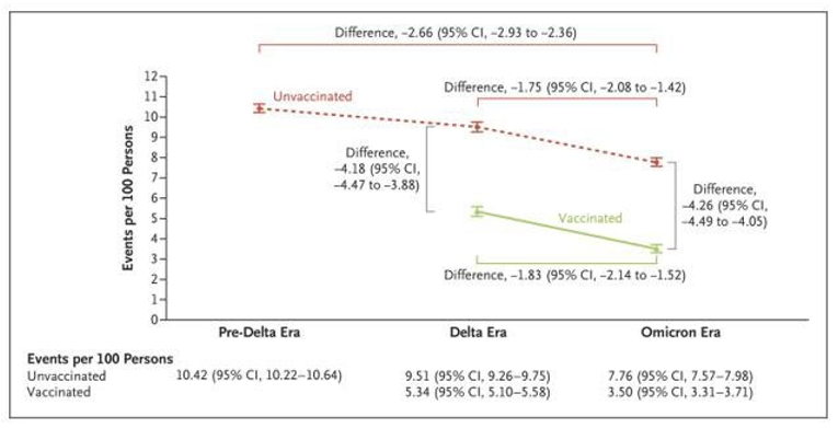 One can only speculate what the Long COVID rates will be. A New England Journal of Medicine paper reported that Long COVID rates had diminished with Omicron and vaccination. This image from the paper summarizes these trends [24].
