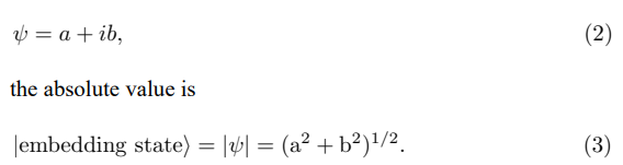 The real embedding space is a projection from the complex space, as illustrated in Figure 1. The real part a is represented by the blue line, the imaginary part b by the red line, and the absolute value |ψ| by the green line.