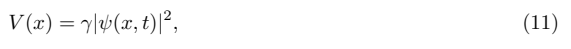 Figure 3: Visualization of the potential V (x) = γ|ψ(x, t)|2 used in the Nonlinear Scrödinger Equation to model semantic wave propagation. The parameter γ controls the strength and direction (self-focusing or defocusing) of the nonlinear interaction.