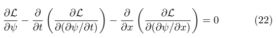and a similar equation for ψ∗. Substituting the Lagrangian above into the Euler-Lagrange equation (and doing the same for ψ*) will yield the time-dependent Schr¨odinger equation,