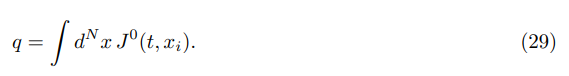 According to Noether’s theorem, this symmetry implies the existence of a conserved semantic charge, q, and a corresponding conserved semantic current, Jµ. The semantic charge is defined as the integral of the semantic charge density, J0, over all space,