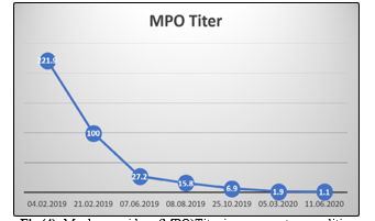 Fig (4): Myeloperoxidase (MPO)Titer in response to vasculitis treatment between January 2019 and June 2020