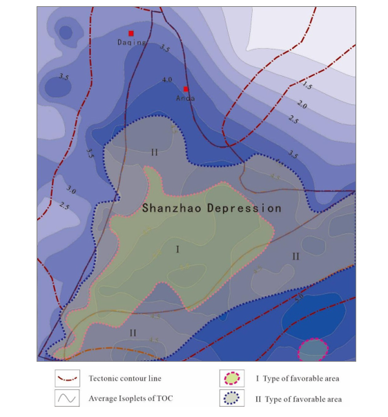 Figure 5: Planar Distribution Map of the Average TOC Value of the Qingshankou Formation in the Sanzhao Depression