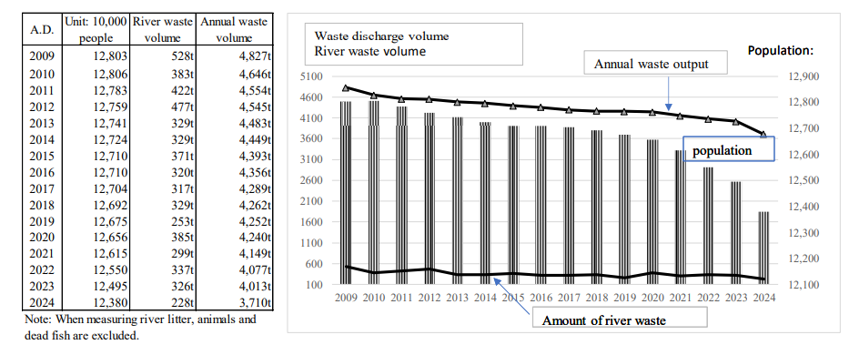 However, on the other hand, the plastic ratio in waste for Japan was set at 10%, but according to my measurements, the actual figure was much higher, the average was 27.7%, of ranging from 15.6% to 39.7% with a 95% confidence level, so 10% is an underestimate (Table S2). Moreover, over the past 15 years, the amount of both general waste and river waste in Japan has been decreasing, mainly due to a decline in population (Table S4, Figure S3).