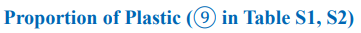 This is the proportion of plastics in the amount of drifting waste. As the Tokyo Metropolitan Government, which collects floating waste in rivers, has not conducted a waste composition survey, the Ministry of the Environment (MOE) has conducted an annual survey of the composition of drifting waste for local governments since FY2020 (surveys were conducted at 89 locations in 39 prefectures in FY2022) from 23 prefectures to determine the proportion of plastic in drifting waste (Table S2). The proportion of plastic waste in the total waste ranged from 15.6% to 39.7% with 95% confidence.